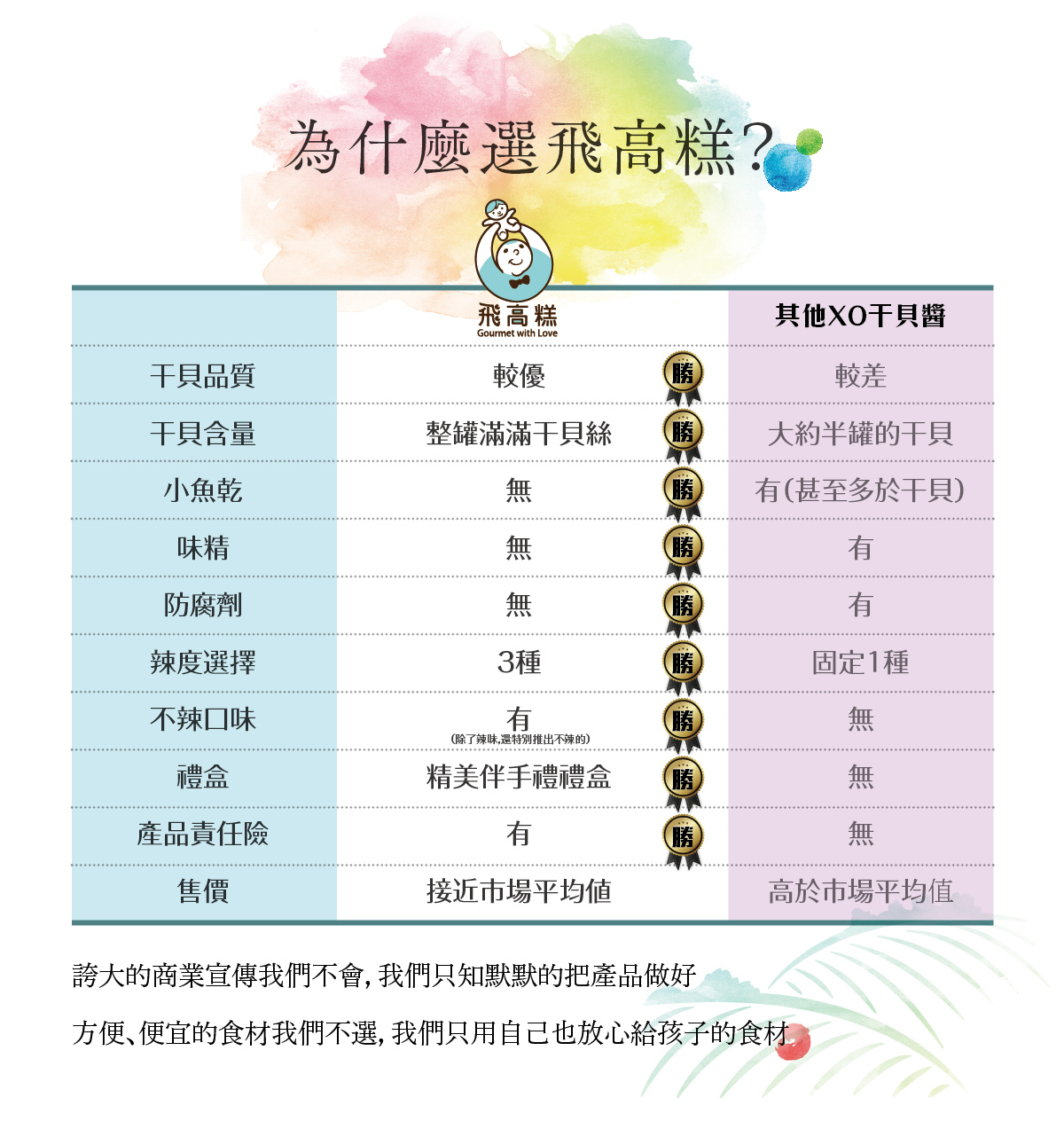 您是不是也擔心吃辣對孩子眼睛發育不好? 飛高糕特別推出獨家不辣的XO醬,讓孩子也能吃、也敢吃。